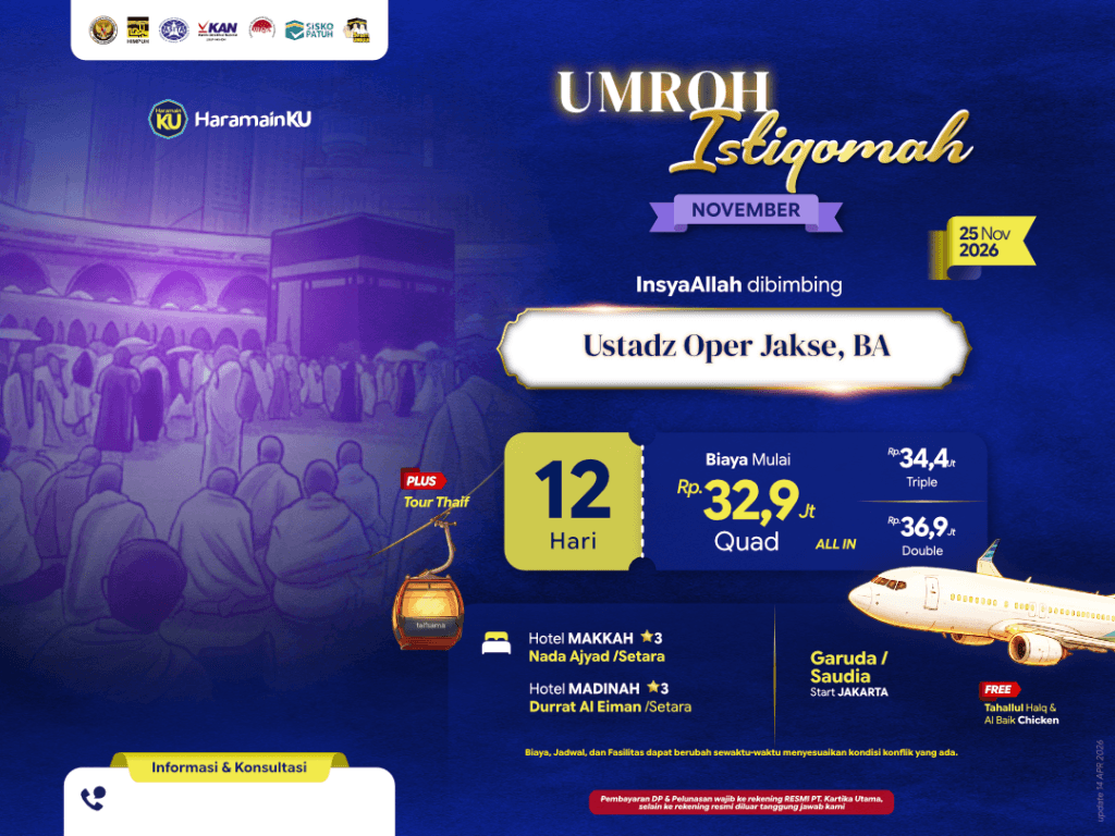 KETENTUAN : Jadwal, Biaya, dan Fasilitas dapan berubah sewaktu-waktu mengikuti kebijakan pemerintah KSA dan Indonesia